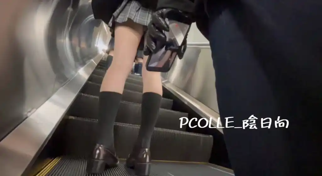 同じ帰宅時間帯に待ち伏せして発見。少し先にJK2人組もいたが、彼女の方を優先してエスカまで追跡。カメラを起動し後ろ姿を撮影してエスカに乗り込もうとした手前で、急に割り込んで前に入ってくる不審者が現れた。車の交通ルールで例えるなら追い越し禁止区間でイエローカットでの割り込み状態。前に割り込んだ男は、彼女とエスカを1段空けて立ってる。エスカ壁と不審男の隙間から覗き込むと、カメラモードになったスマホ画面が見え、そこには彼女の食い込み気味のスカートの中が映っている状態。声をかける勇気はなかったが無言の圧をかけるように少し体を前のめりにすると、その男はエスカの降り際で横にずれて上方へ歩いて行ってしまった。